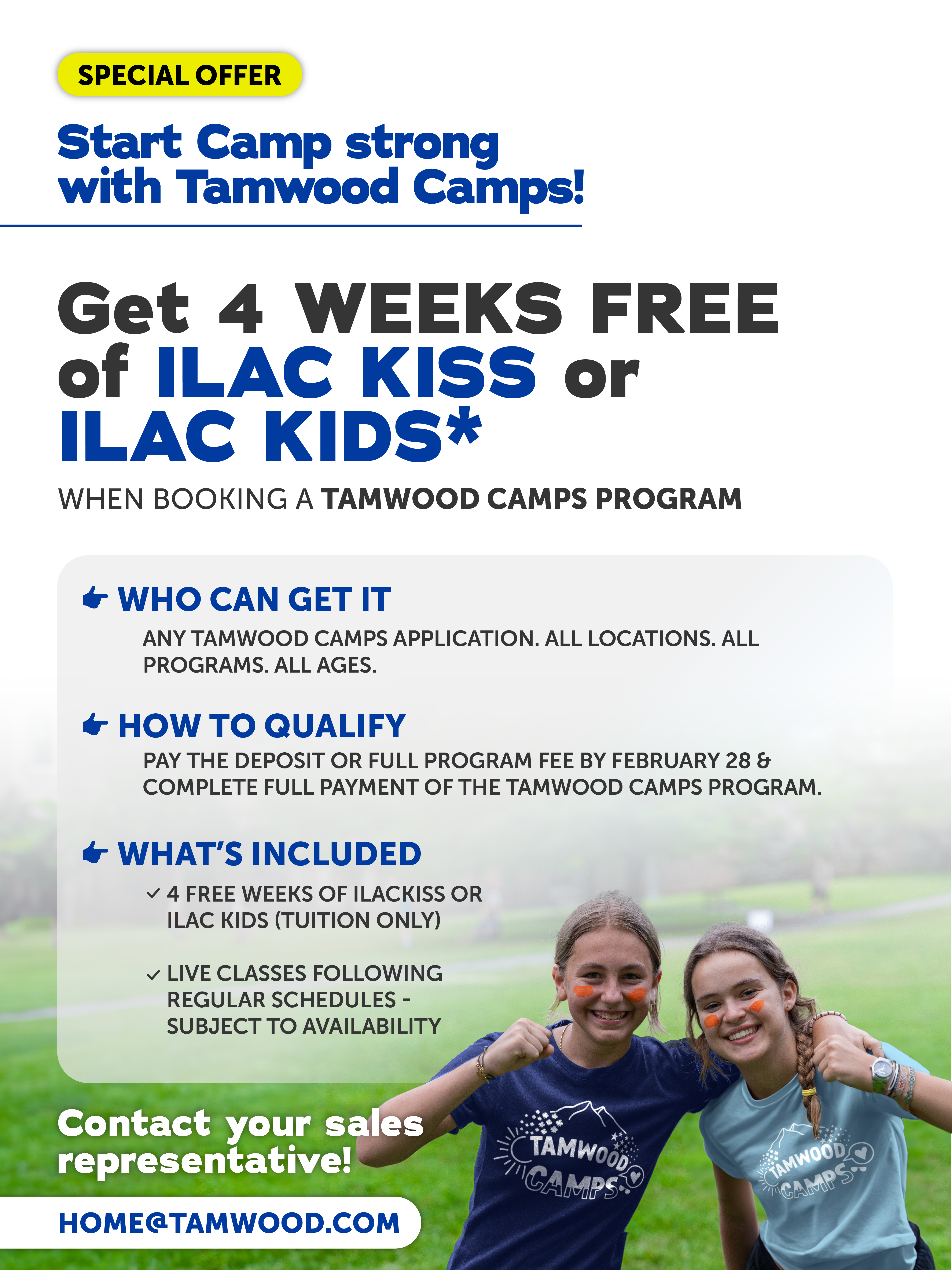 - Choose from Tamwood Camps: Language or Specialized Programs